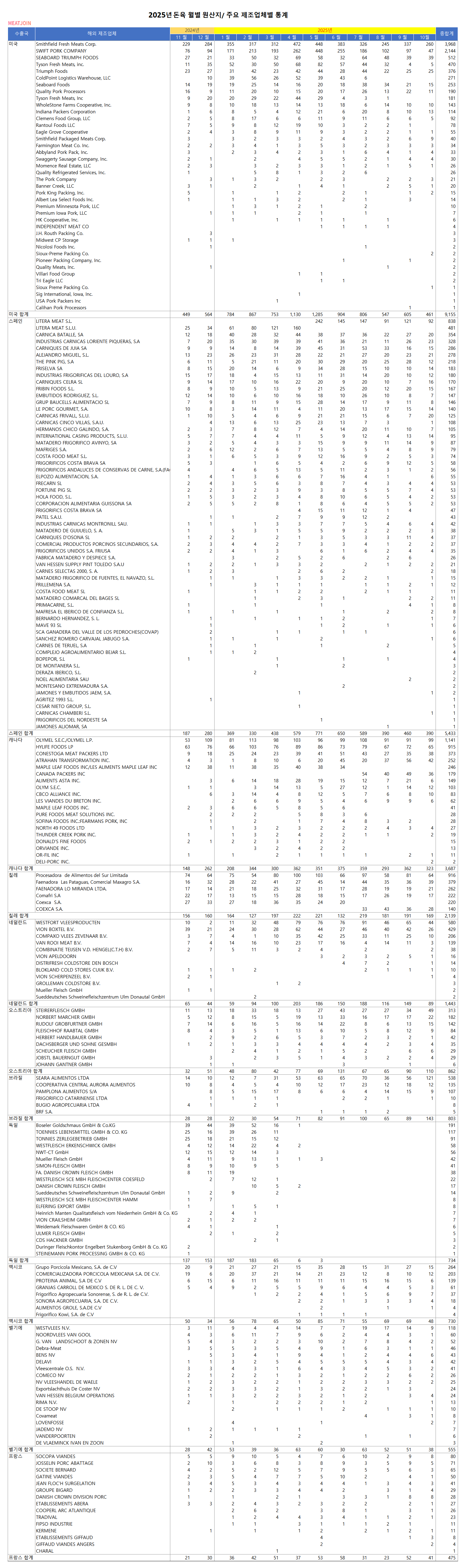 2025년 10월기준 돈육 월별 원산지/ 주요 제조업체별 통계