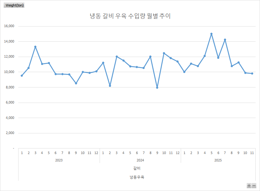 윗글 2025년 11월 기준 냉장우육 검역량 기준 차트 관리자 2025-12-08