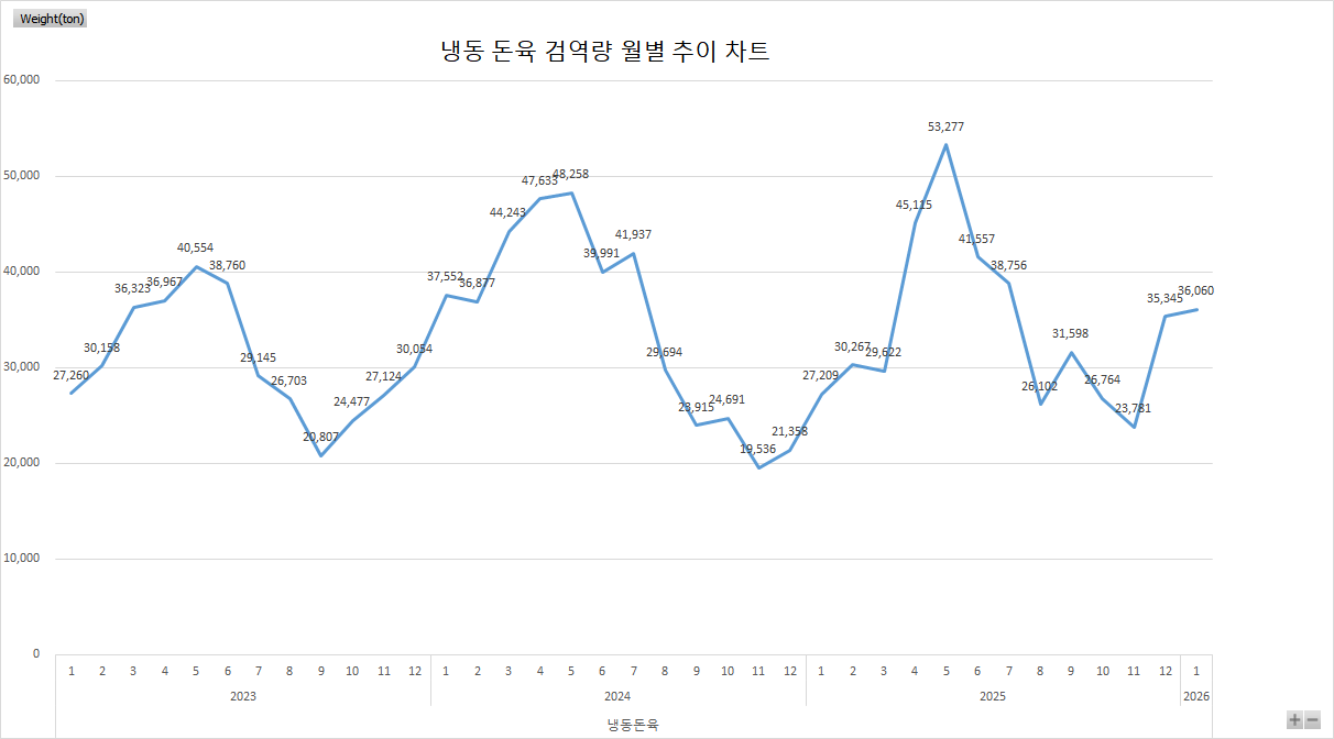 2026년 1월 기준 냉동돈육 검역량 기준 차트