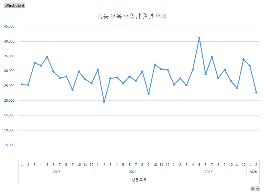 2026년 2월 기준 냉동우육 검역량 기준 차트
