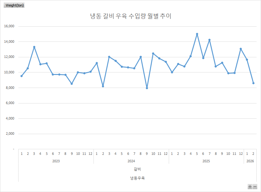 2026년 2월 기준 냉동우육 검역량 기준 차트