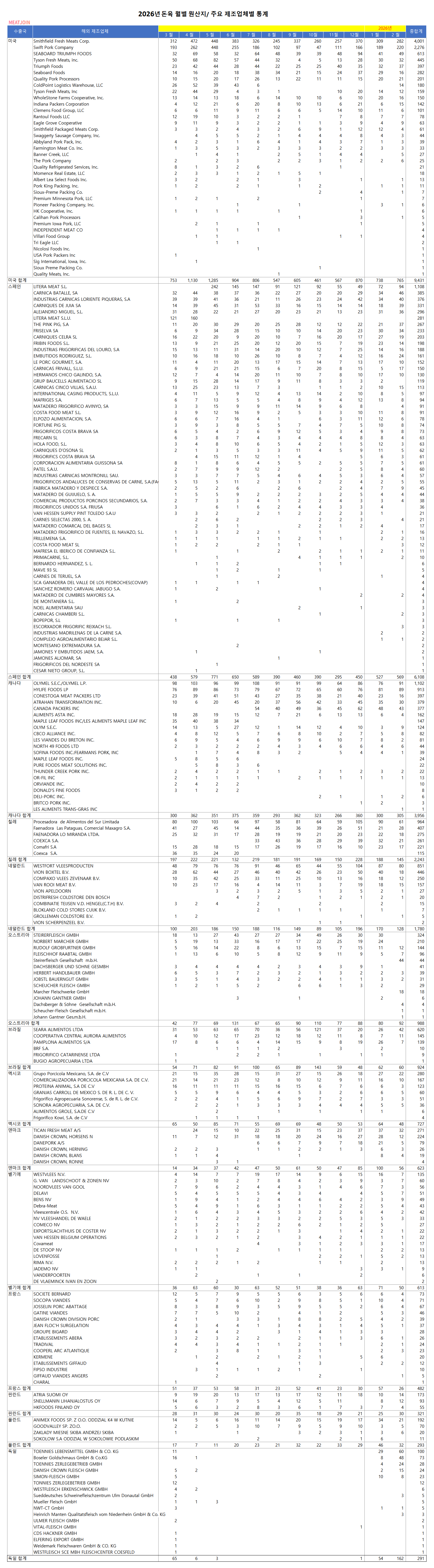 2026년 2월기준 돈육 월별 원산지/ 주요 제조업체별 통계