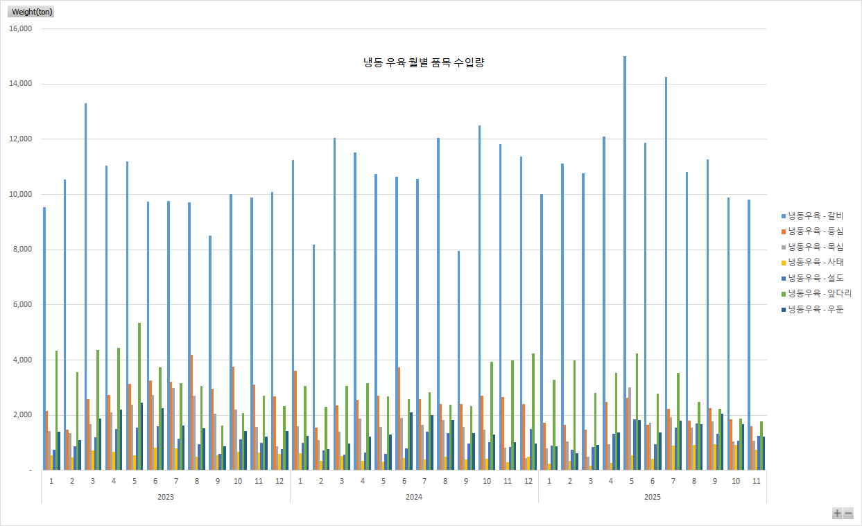윗글 25년11월기준 냉장우육 월별 추이 차트 관리자 2025-12-08