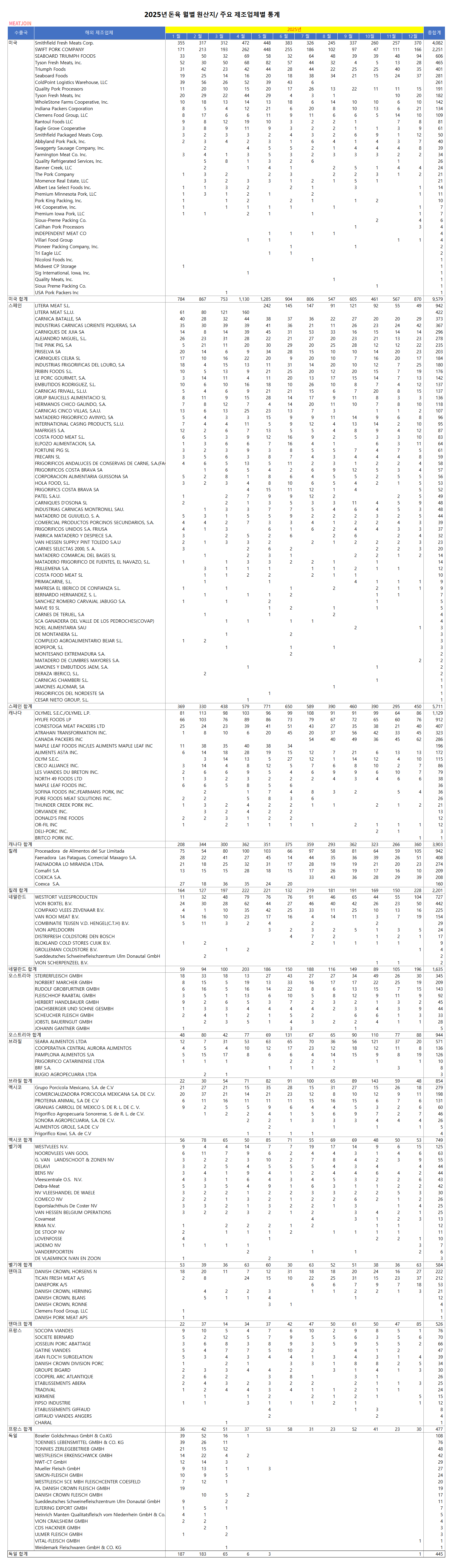 2025년 12월기준 돈육 월별 원산지/ 주요 제조업체별 통계