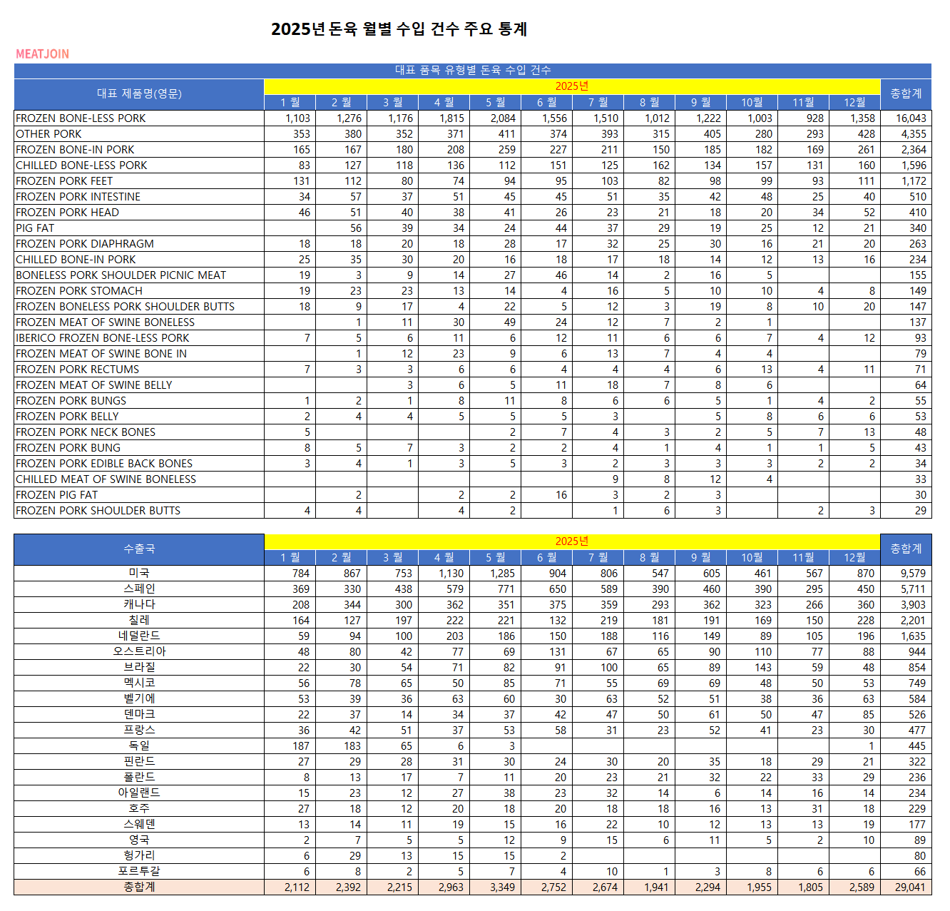 2025년 12월기준 돈육 월별 원산지/ 주요 제조업체별 통계