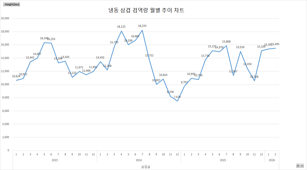 26년2월 기준 냉동 삼겹 추이 차트
