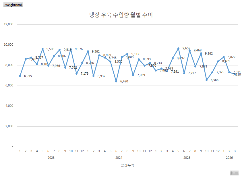 2026년 3월 기준 냉장우육 검역량 기준 차트