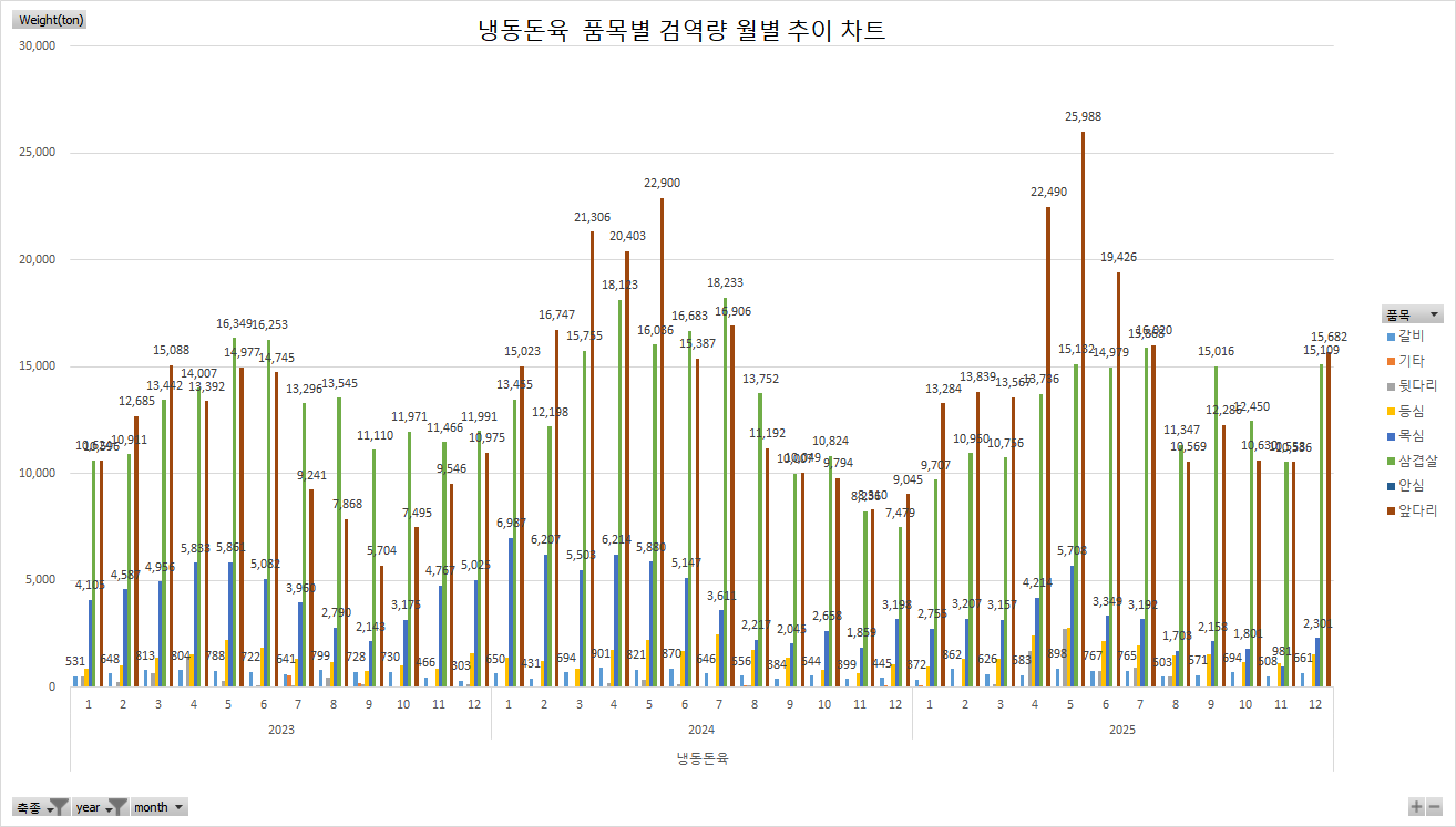 25년12월기준 냉동돈육 월별 추이 차트