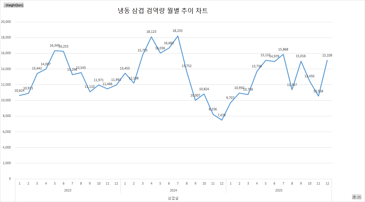 25년12월 기준 냉동 삼겹 추이 차트