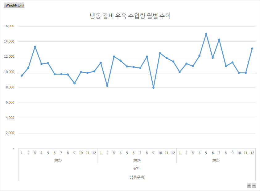 25년12월 기준 냉동 갈비 추이 차트