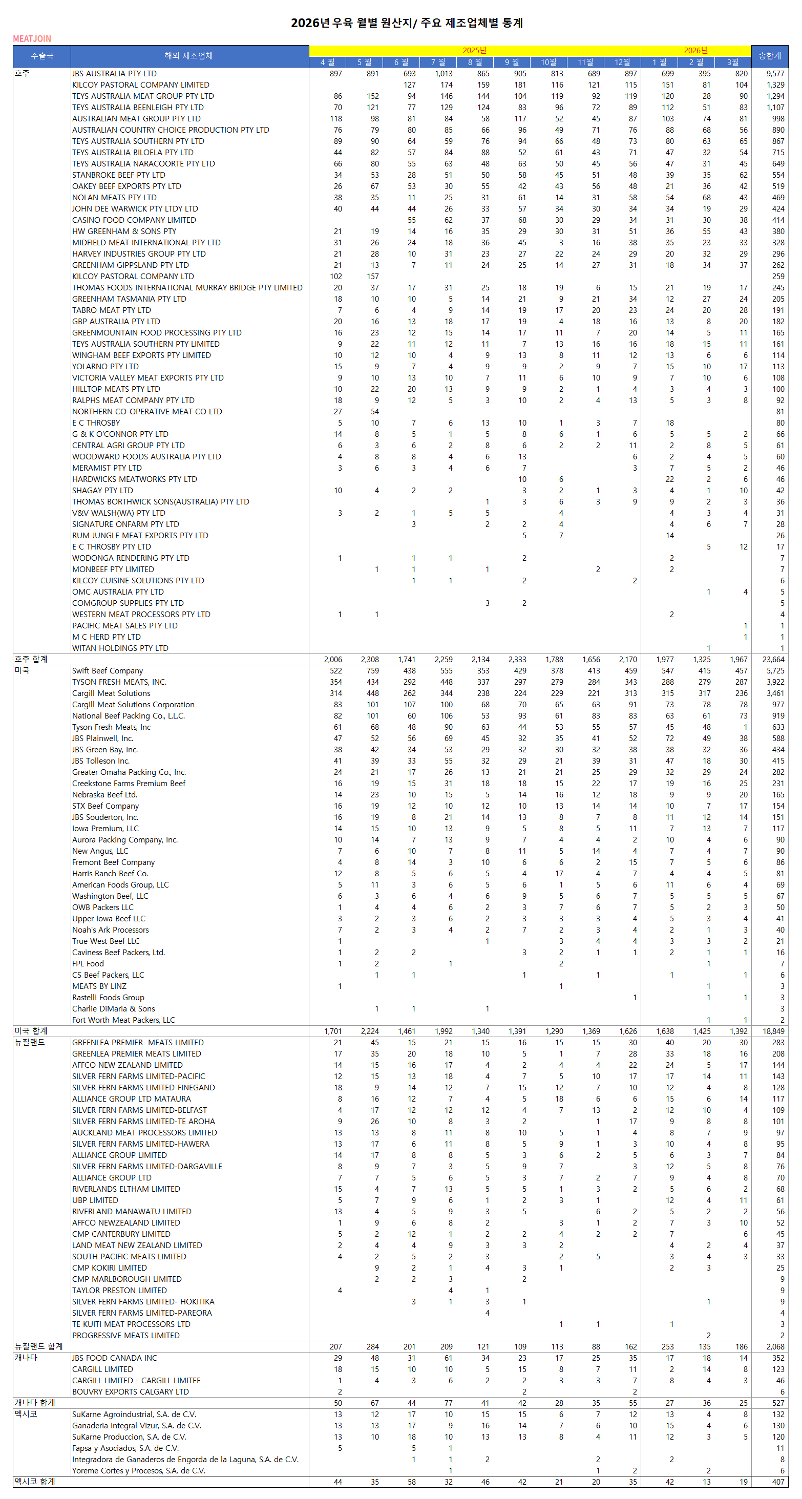 2026년 3월기준 우육 월별 원산지/ 주요 제조업체별 통계